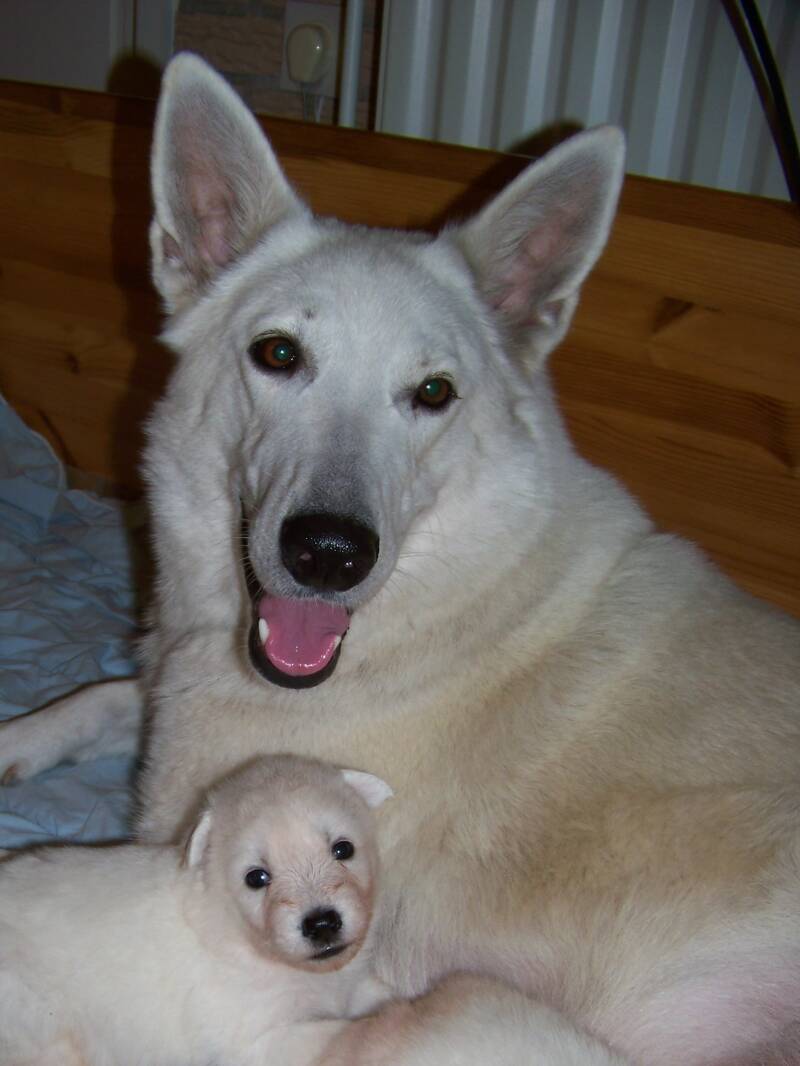 Maya is door zeer gewaardeerd fokker Linda Oosterom vanuit Zweden geïmporteerd en bij gastgezin Natascha Kamstra geplaatst. Helaas overleed Linda Oosterom niet lang daarna. Maya leerde ik al kennen in 2012. Ik was toen erg van haar gecharmeerd: wat een mooi, lief puppenmeisje met ook nog eens bijzondere bloedlijnen! In 2014 zijn het baasje van Maya, Inka Natascha Kamstra, en ik in overleg gegaan om Maya eens 'onder de vlag' van Prolingea een nestje te laten krijgen. Hierdoor kon ik in 2015 zes witte bolletjes verwelkomen! De vader van dit nestje was mijn eigen Jerzan. Aangezien het erg goed beviel, is de combinatie nogmaals herhaald in 2016.